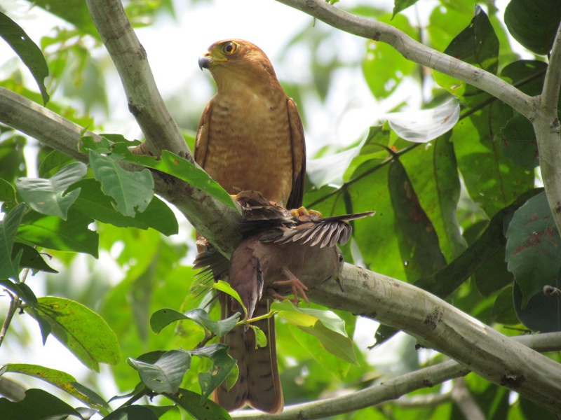 Costa, T.V.V., and C.F. Vargas (2011) Tiny Hawk Accipiter superciliosus attacking a Golden-green Woodpecker Piculus chrysochloros in central Amazonian Brazil. Cotinga 33:134-136.