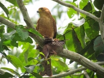 Reprodução: Dados reprodutivos bastante escassos. Coloca de um a três ovos; Na Venezuela já foi registrado utilizar um ninho abandonado de gavião-belo Busarellus nigricollis (Márquez et al. 2005).