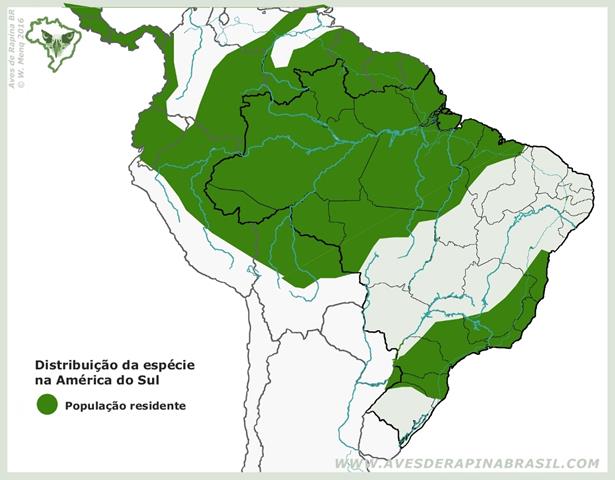 Distribuição e subespécies: Neotropical, ocorre desde a América Central até o norte da Argentina, incluindo grande parte do Brasil. São reconhecidas duas subespécies: