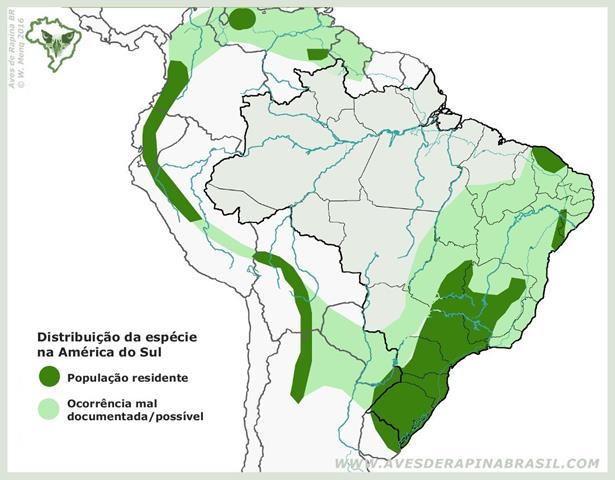 Distribuição geográfica: Possui distribuição ampla e descontínua na América do Sul; ocorre desde os Andes da Venezuela, Equador para o sul até o norte da Argentina (Tucumán). Outra população ocorre no sul, sudeste e parte do centro-oeste do Brasil (desde Goiás e Minas Gerais até o Rio Grande do Sul), até o nordeste da Argentina (Misiones) e Uruguai. Há também populações isoladas na região nordeste (Ceará, Pernambuco, Alagoas e Bahia). São conhecidas três subespécies: