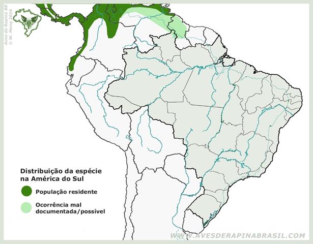 No Brasil, possivelmente ocorre na fronteira com as Guianas e a Venezuela. Sua inclusão na lista das aves do Brasil foi estabelecida a partir de registros mal documentados, além da probabilidade de sua existência no extremo norte do país (Roraima) (CBRO 2009).