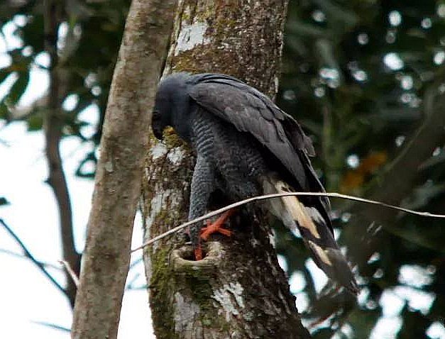 Gavião presente em todo o Brasil, encontrado em florestas, cerrados e borda de matas. Uma característica singular dessa espécie é seus tarsos longos e a capaciade de dobrá-los para trás e para frente, adaptação que permite explorar fendas e cavidades de árvores para procurar presas. Também conhecido como gavião-roxo e gavião-mateiro.