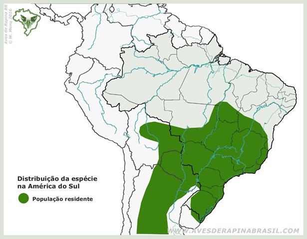 Distribuição Geográfica: Ocorre na Bolívia, Argentina e Brasil, com registros históricos no Uruguai onde se encontra provavelmente extinta (Collar et al. 1992). No Brasil, ocupa a região centro-oeste e meridional, desde o sul do Maranhão e Pará, Bahia até o Rio Grande do Sul.
