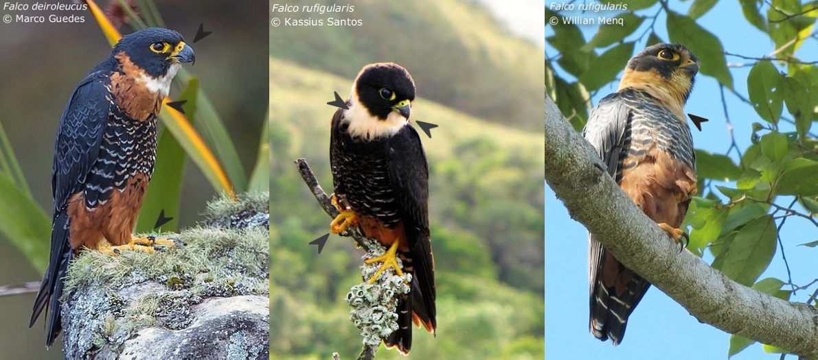 Falcão-de-peito-laranja (Falco deiroleucus) x Cauré (Falco rufigularis)