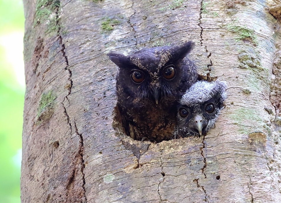 Adulto e filhote no ninho. Manaus/AM, Ago. 2017.