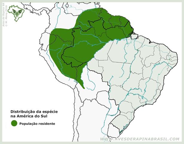 Distribuição Geográfica: Ocorre nas Guianas, Venezuela, Colômbia, Bolívia e norte do Brasil (sul do rio Amazonas e oeste do rio Madeira até o Acre).