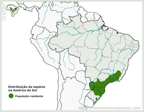 Distribuição Geográfica: Endêmica da Mata Atlântica, ocorre no sul e sudeste do Brasil (sul de Minas Gerais até o Rio Grande do Sul), leste do Paraguai e nordeste da Argentina (Misiones). Também conta com registros isolados em formações florestais no sul do Rio Grande do Sul (Pelotas).